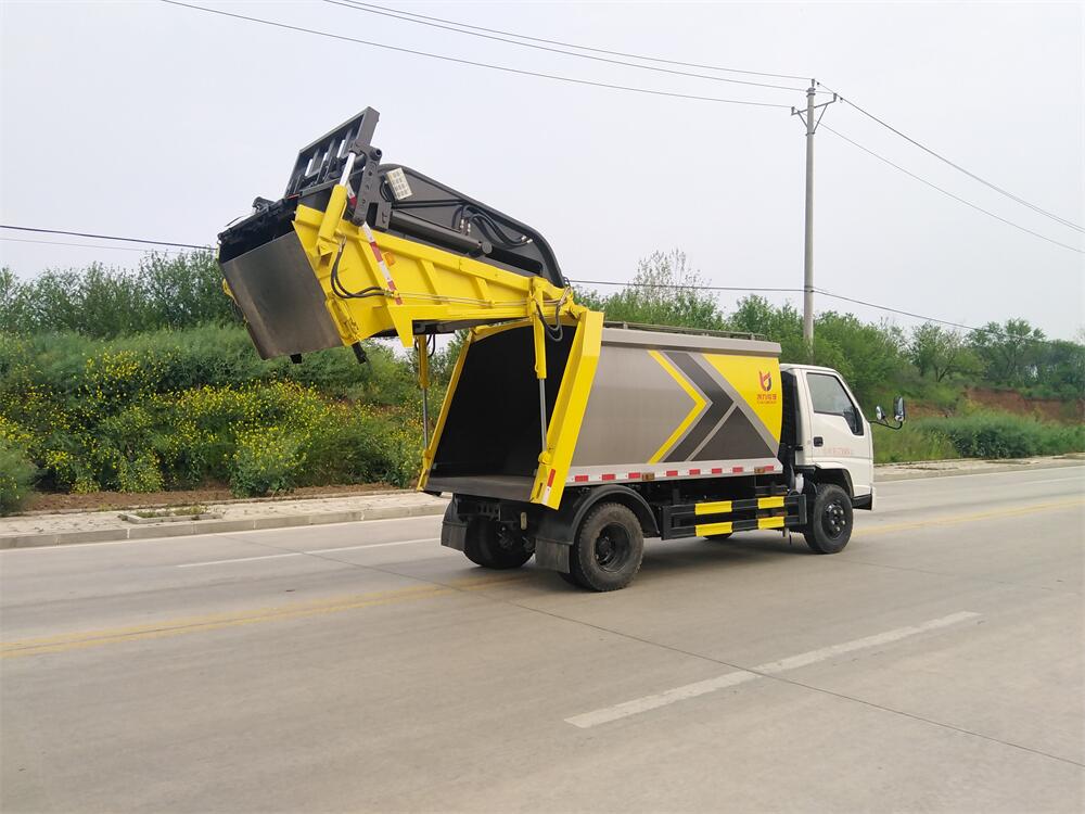 上裝配置:垃圾箱容積:6方,新款平面弧形廂體,廂體材料為武鋼優(yōu)質(zhì)碳鋼,PLC一鍵操作**,手電一體操作模式,兩側(cè)雙電控,帶駕駛室內(nèi)操作,底板支撐加強(qiáng),雙向壓縮,開放式易清潔污水箱。壓縮式垃圾車采用機(jī)電液一體化技術(shù),借助機(jī)、電、液聯(lián)合自動(dòng)**系統(tǒng)、電腦**、手動(dòng)操作系統(tǒng),通過填裝器和推鏟等專用裝置,實(shí)現(xiàn)垃圾倒入、壓碎或壓扁、強(qiáng)力裝填,把垃圾擠入車廂并壓實(shí)和推卸,污水全部進(jìn)入污水廂,解決了垃圾運(yùn)輸過程中的二次污染的問題。壓縮式垃圾車具有自動(dòng)反復(fù)壓縮以及蠕動(dòng)壓縮功能,壓縮比高、密封性好、裝載量大﹑操作方便、環(huán)保性好﹑整車?yán)霉β矢叩葍?yōu)點(diǎn)。作業(yè)自動(dòng)化,垃圾收集方式簡(jiǎn)便、高效。后翻轉(zhuǎn)機(jī)構(gòu)選裝:1、掛塑料桶式翻轉(zhuǎn)機(jī)構(gòu);2、掛鐵桶式翻轉(zhuǎn)機(jī)構(gòu);3、擺臂式翻轉(zhuǎn)機(jī)構(gòu); 4、簸箕斗式翻轉(zhuǎn)機(jī)構(gòu)。