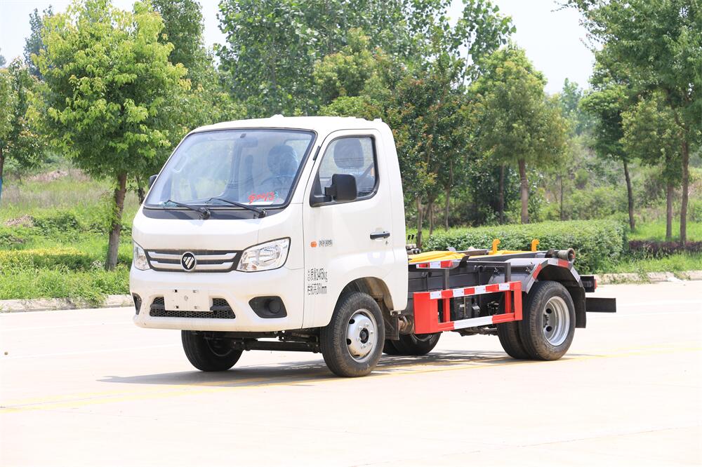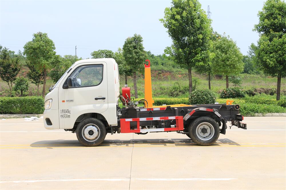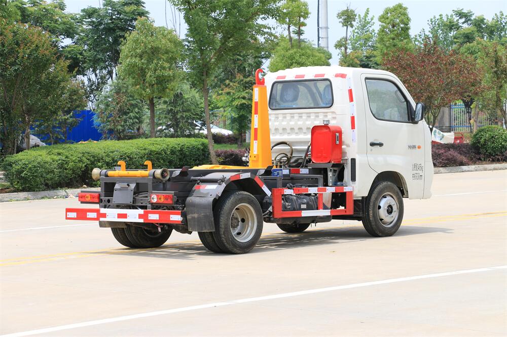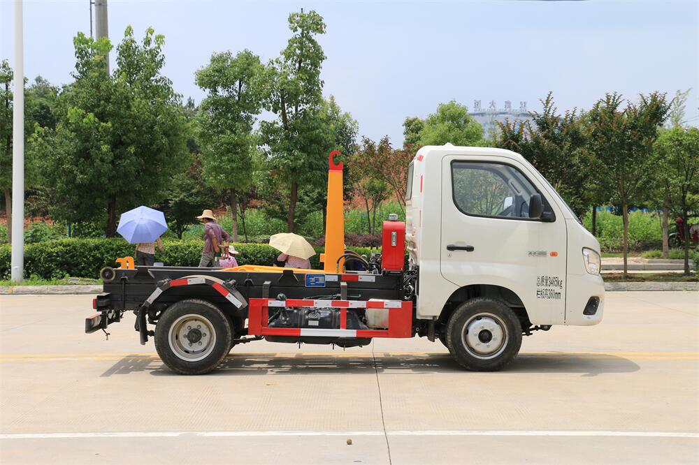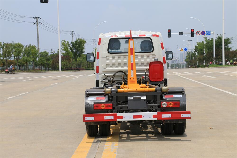勾臂式垃圾車(車廂可卸式垃圾車)介紹: 車廂可卸式垃圾車又叫拉臂式垃圾車,是一種采用高新設計可伸縮的鉤臂,實現垃圾廂的二次吊裝,自吊上放下,可自行傾倒垃圾的環衛設備。 拉臂式垃圾車結構簡單,操作穩定方便,裝卸效率高,機械化程度高,節省人力。鉤臂垃圾車一車可帶多個垃圾廂,在裝卸的運輸過程中可有效地避免二次污染。 拉臂垃圾車采用高新設計可擺動的鉤臂,垃圾箱由框架、開啟油缸、滑輪、后門和若干加強框架與鋼板焊接而成。調換貨廂快捷方便,貨廂上帶蓋(倒垃圾時可翻開),鉤臂垃圾車垃圾廂體可選用碳鋼、不銹鋼材質、內部采取環氧樹脂防腐處理,改裝部分與原車底盤為可分離式,維修方便且保持了原車的機動性及行駛性能。
