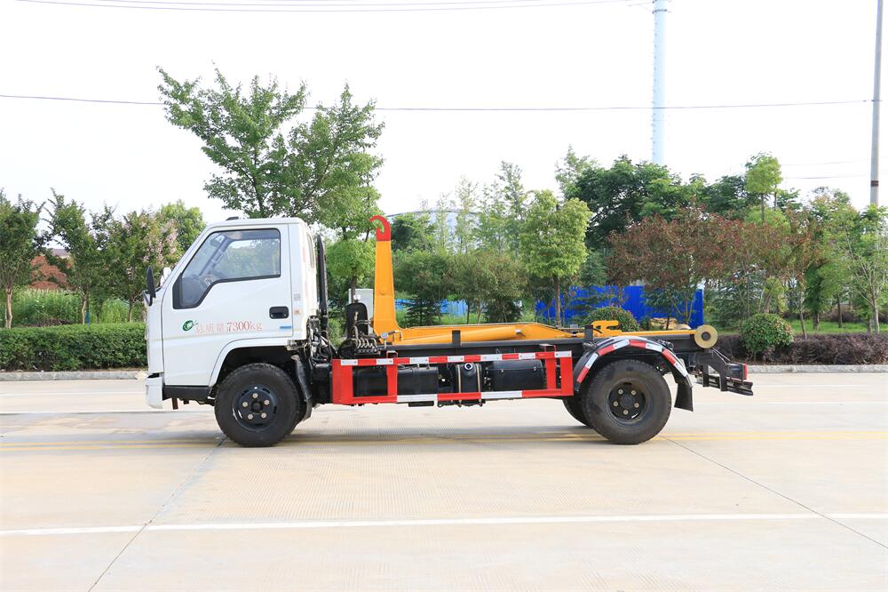 勾臂式垃圾車(車廂可卸式垃圾車)介紹: 車廂可卸式垃圾車又叫拉臂式垃圾車,是一種采用高新設(shè)計(jì)可伸縮的鉤臂,實(shí)現(xiàn)垃圾廂的二次吊裝,自吊上放下,可自行傾倒垃圾的環(huán)衛(wèi)設(shè)備。 拉臂式垃圾車結(jié)構(gòu)簡單,操作穩(wěn)定方便,裝卸效率高,機(jī)械化程度高,節(jié)省人力。鉤臂垃圾車一車可帶多個(gè)垃圾廂,在裝卸的運(yùn)輸過程中可有效地避免二次污染。 拉臂垃圾車采用高新設(shè)計(jì)可擺動(dòng)的鉤臂,垃圾箱由框架、開啟油缸、滑輪、后門和若干加強(qiáng)框架與鋼板焊接而成。調(diào)換貨廂快捷方便,貨廂上帶蓋(倒垃圾時(shí)可翻開),鉤臂垃圾車?yán)鴰w可選用碳鋼、不銹鋼材質(zhì)、內(nèi)部采取環(huán)氧樹脂防腐處理,改裝部分與原車底盤為可分離式,維修方便且保持了原車的機(jī)動(dòng)性及行駛性能。