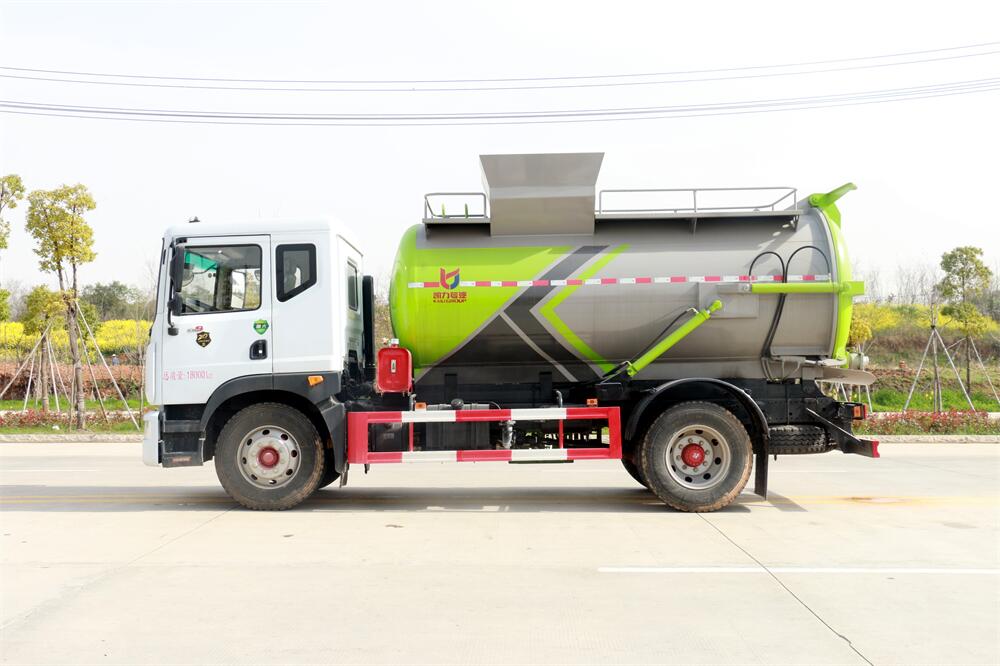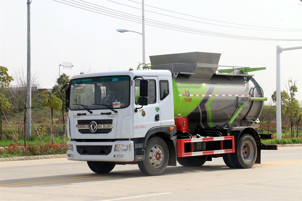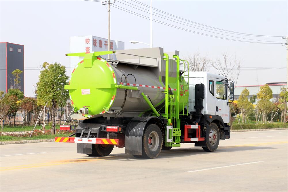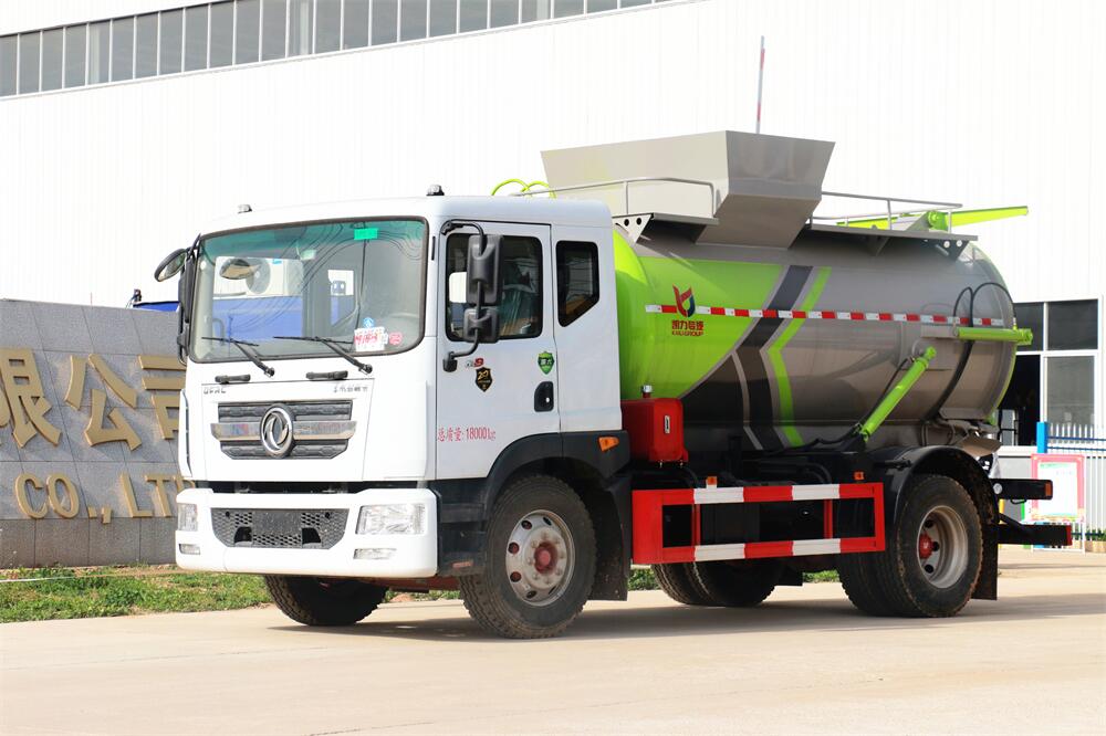 上裝配置:罐體容積10m3,配備120L/240L掛桶提升翻轉機構,液壓系統,后蓋液壓鎖緊開啟,罐體可以舉升自卸,尾部帶自流閥;用于運輸液態垃圾,其特點操作簡單,密封性好,無泄漏,無異味;可選裝固液分離功能,推板擠壓功能,常用于餐館的垃圾轉運處理。