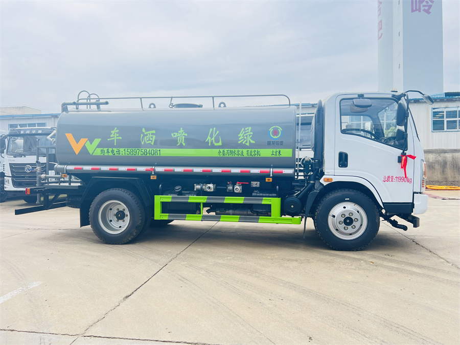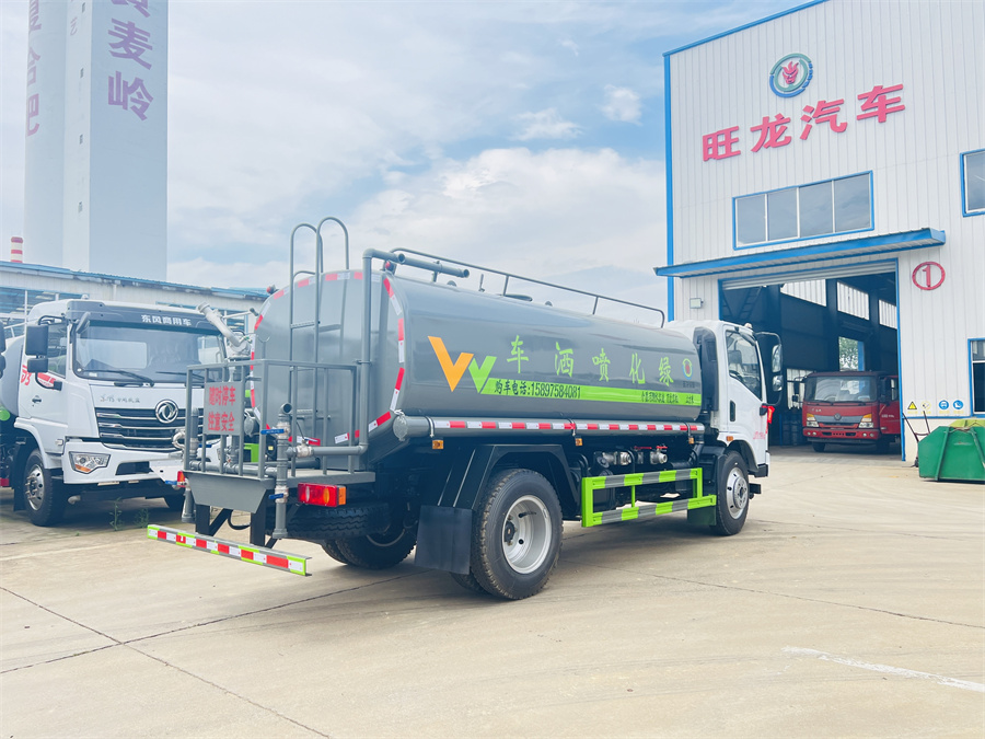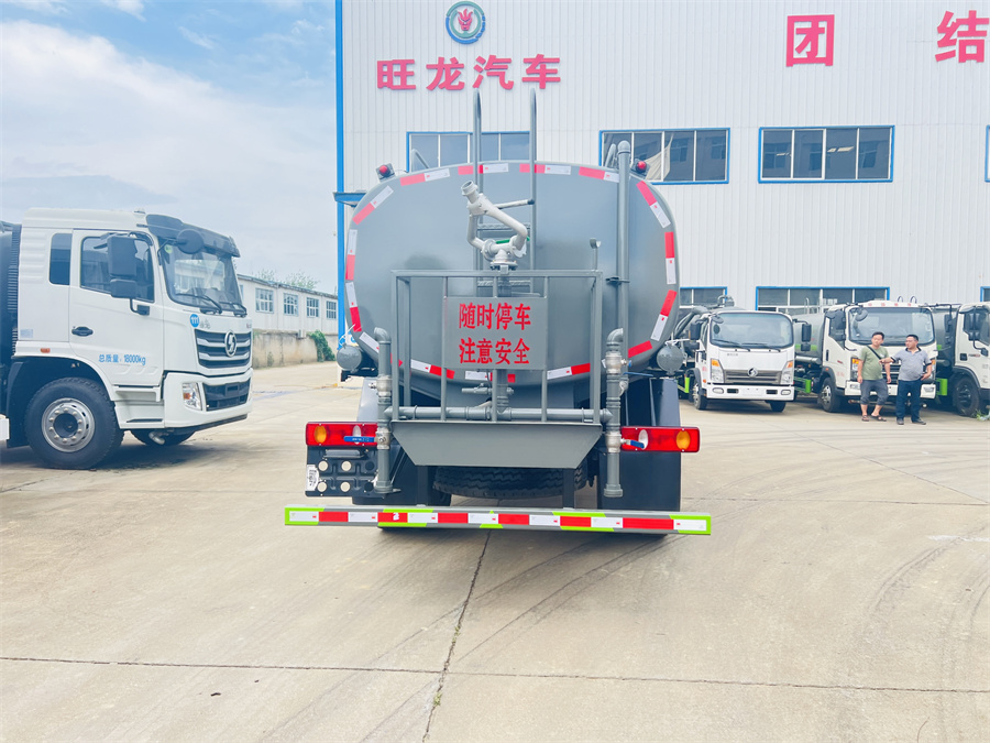 灑水車前裝有鴨形噴嘴或圓頭沖嘴,后面裝有圓柱開灑水噴嘴或蓮蓬頭噴嘴,后部有一工作平臺,裝配有水炮。后部還可裝8個噴嘴(選裝)。