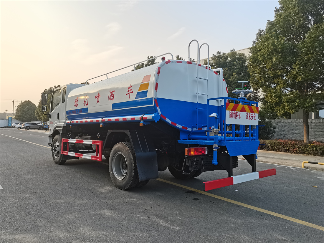 灑水車性能特點:前沖(噴)后灑,帶側噴,罐體后帶工作平臺,平臺上安裝綠化灑水炮,灑水炮可360旋轉,可連續調成直沖狀、大雨、小雨、毛毛雨,帶安全護欄,配備全國質量評比**名的杭州威龍大功率專用 灑水泵,泵可自吸自排,安裝過濾網,帶消防接口,可通過消防栓進水,帶自流閥,隨車選裝20米綠化卷盤,可噴灑農藥。