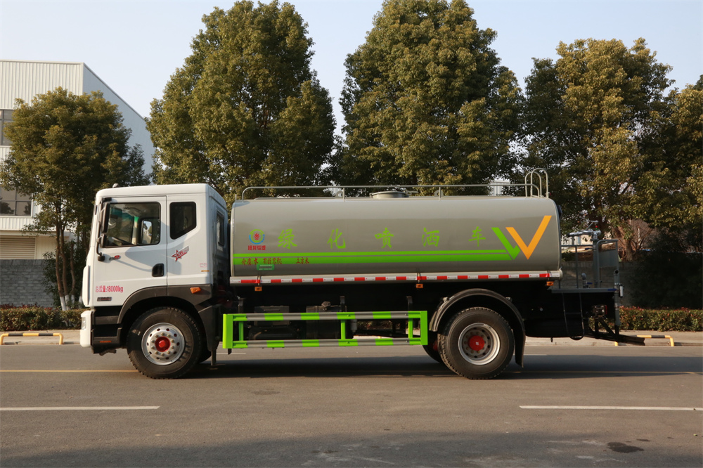 灑水車性能特點:前沖(噴)后灑,帶側噴,罐體后帶工作平臺,平臺上安裝綠化灑水炮,灑水炮可360旋轉,可連續調成直沖狀、大雨、小雨、毛毛雨,帶安全護欄,配備全國質量評比**名的杭州威龍大功率專用  灑水泵,泵可自吸自排,安裝過濾網,帶消防接口,可通過消防栓進水,帶自流閥,隨車選裝20米綠化卷盤,可噴灑農藥。