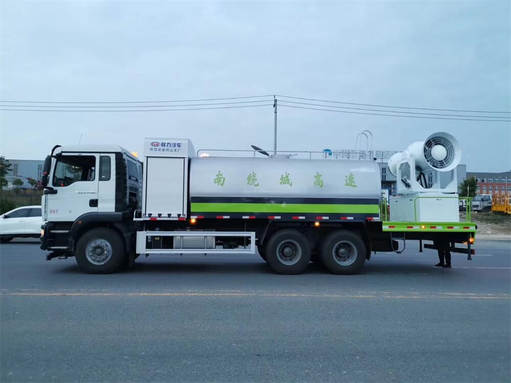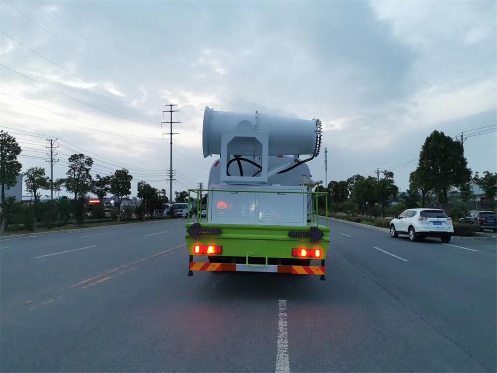 上裝配置:罐體容積為 16立方,選配風(fēng)送式霧炮機(jī)組射程30米、40米、50米、60米、80米、100米、120米霧炮,罐體鋼板為4mm碳鋼Q235材質(zhì),罐內(nèi)隔板具有防波作用,以減輕汽車行駛時罐體液體沖擊,罐體及整車外形尺寸按照公告。帶大功率專用灑水泵,泵可自吸自排,整車前沖、后灑、側(cè)噴、帶65消防接口,后平臺配CLW-50、CLW-60、CLW-80、CLW-100、CLW-120型風(fēng)送式霧炮機(jī)組;罐體前封頭配大功率柴油發(fā)電機(jī)組;前封頭帶水位計,后平臺主管路帶1寸澆花接口,后爬梯。帶兩根輸水管及陰陽端。罐體顏色:銀/灰/綠,罐體兩側(cè)噴“多功能抑塵車”字樣,貼反光標(biāo)示。