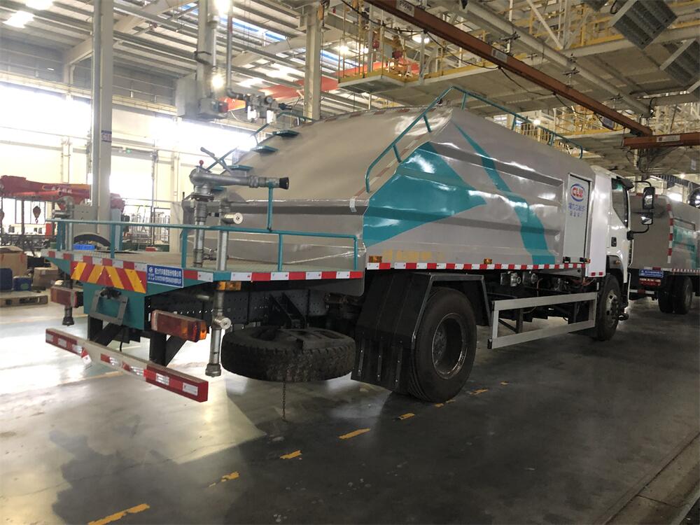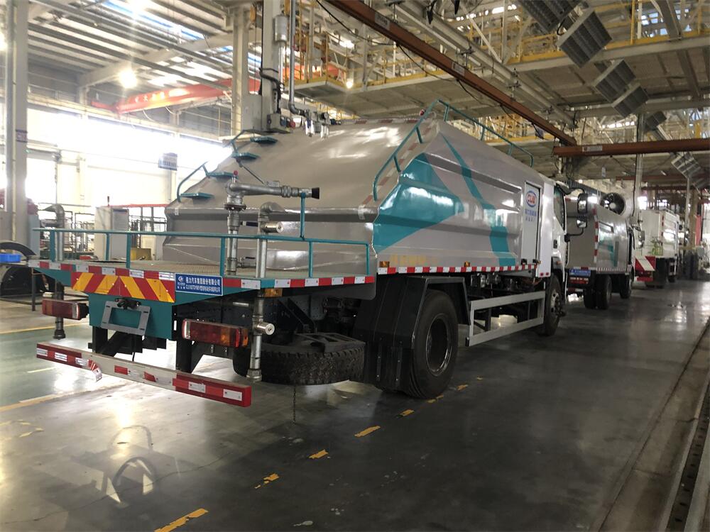 上裝配置:罐體容積為 8立方,選配風送式霧炮機組射程30米、40米、50米、60米、80米、100米、120米霧炮,罐體鋼板為4mm碳鋼Q235材質(zhì),罐內(nèi)隔板具有防波作用,以減輕汽車行駛時罐體液體沖擊,罐體及整車外形尺寸按照公告。帶大功率專用灑水泵,泵可自吸自排,整車前沖、后灑、側(cè)噴、帶65消防接口,后平臺配CLW-50、CLW-60、CLW-80、CLW-100、CLW-120型風送式霧炮機組;罐體前封頭配大功率柴油發(fā)電機組;前封頭帶水位計,后平臺主管路帶1寸澆花接口,后爬梯。帶兩根輸水管及陰陽端。罐體顏色:銀/灰/綠,罐體兩側(cè)噴“多功能抑塵車”字樣,貼反光標示。