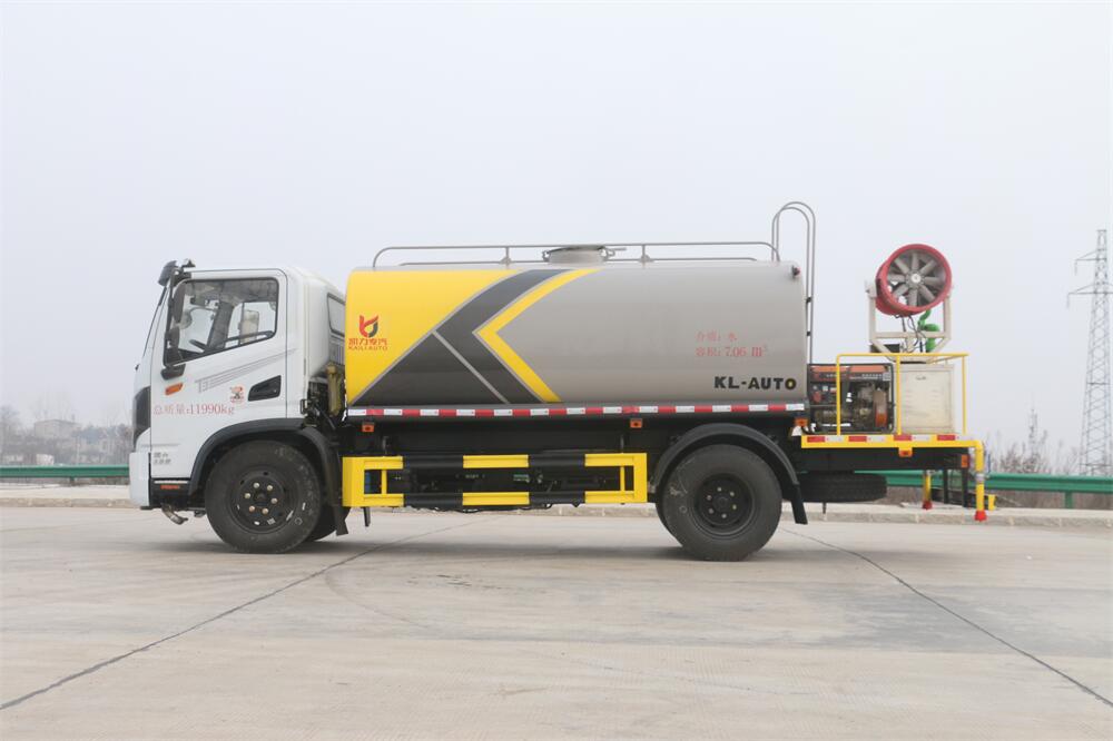 上裝配置:罐體容積 9立方,風送式霧炮機組30米,40米選擇,罐體采用國標Q235碳鋼材質,罐體厚度4MM,前后封頭5MM加厚型,罐體內雙層隔板具有防波蕩作用,以減輕汽車行駛時罐內液體沖擊;灑水車整車及外形尺寸嚴格按照**機動車公告制作而成;裝配大功率專用灑水泵,前沖、后灑、側噴、后平臺帶綠化灑水炮,灑水炮可全方位旋轉,可連續調成直沖狀、大雨、小雨、毛毛雨;配消防接口,自流閥,濾網,帶自吸自排功能。前封頭帶水位計,后平臺主管路帶1寸澆花接口,后爬梯,帶1個消防接頭,帶1個自流閥,1個過濾裝置,其余標配。