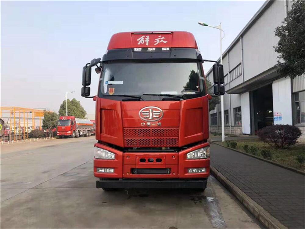 1.底盤配置:底盤采用解放J6前四后八危險品專用底盤,新規空氣懸架符合新規,全車選用輕量化鋁合金輪轂,搭配大柴320馬力發動機,解放9檔變速箱,整車不超重,額載21噸,兩個鋁合金歐標灌口,一個鋁合金海底閥(緊急切斷閥),一個鋁合金泄油閥,一個防溢流閥,一套油氣回收裝置,配兩個滅火器,兩根與罐體等長的輸油管,防火帽,接地靜電線,粘貼易燃液體貼,后部貼反光標志,安全告示板。車體前段帶有爬梯,檢查罐體更方便!