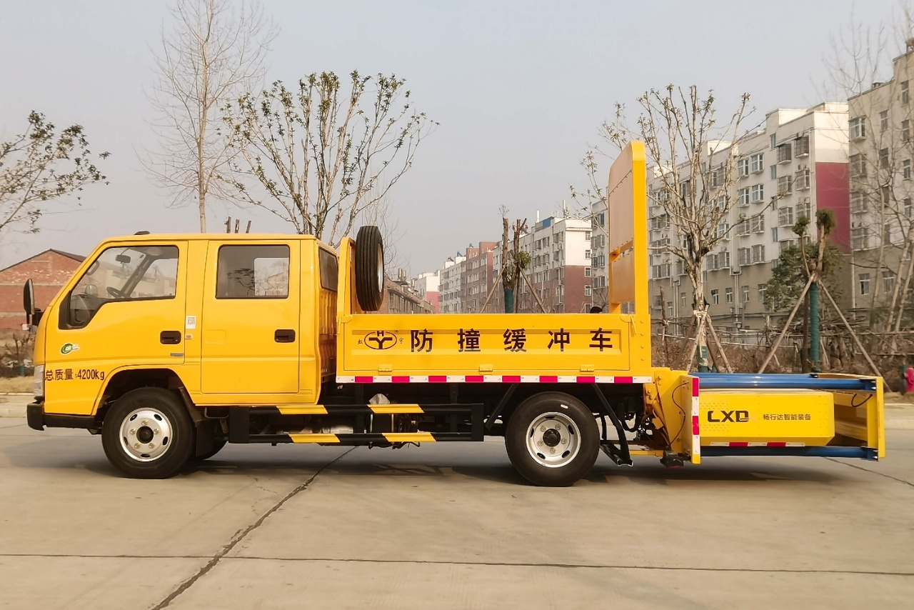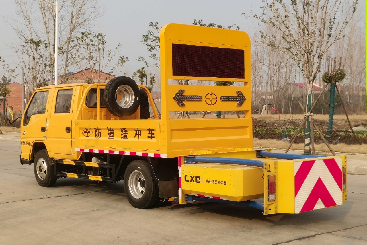上裝配置:箱體采用國標優質板材制作,箱體后部防撞緩沖模塊采用國際知名技術產品暢行達70K/80K防撞緩沖模塊,防撞緩沖吸能模塊主要由車載防撞緩沖墊和導向標志架組成,燈架上設有LED屏幕,LED箭頭指示燈,語音**示喇叭,LED爆閃燈等多種聲光**示系統,充當施工作業車輛后方的緩沖衛士。如若發生追尾事故,能夠在肇事車輛和前方施工作業區域之間構建一個緩沖區域,通過機具結構變形吸收撞擊的能量,**限度地降低被保護人員及設備遭到碰撞的幾率。高性能液壓系統,可實現快速舉升和落下操作,安全穩定高效。