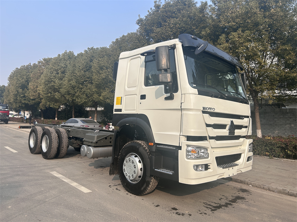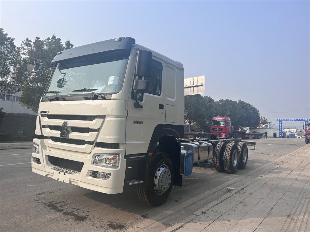 ZZ1257N4647B1R 出口HC16雙后橋(鼓),雙層車架(8+8/300),前后加強版多片簧(10/12),HW19710變速箱+HW70法蘭式取力器,WP10.340E22發動機,HW76新前臉駕駛室,12.00R20輪胎(混合花紋/18PR),不帶ABS,速比5.73,高位保險杠(全金屬),右置方向機,VGD95前軸(鼓)